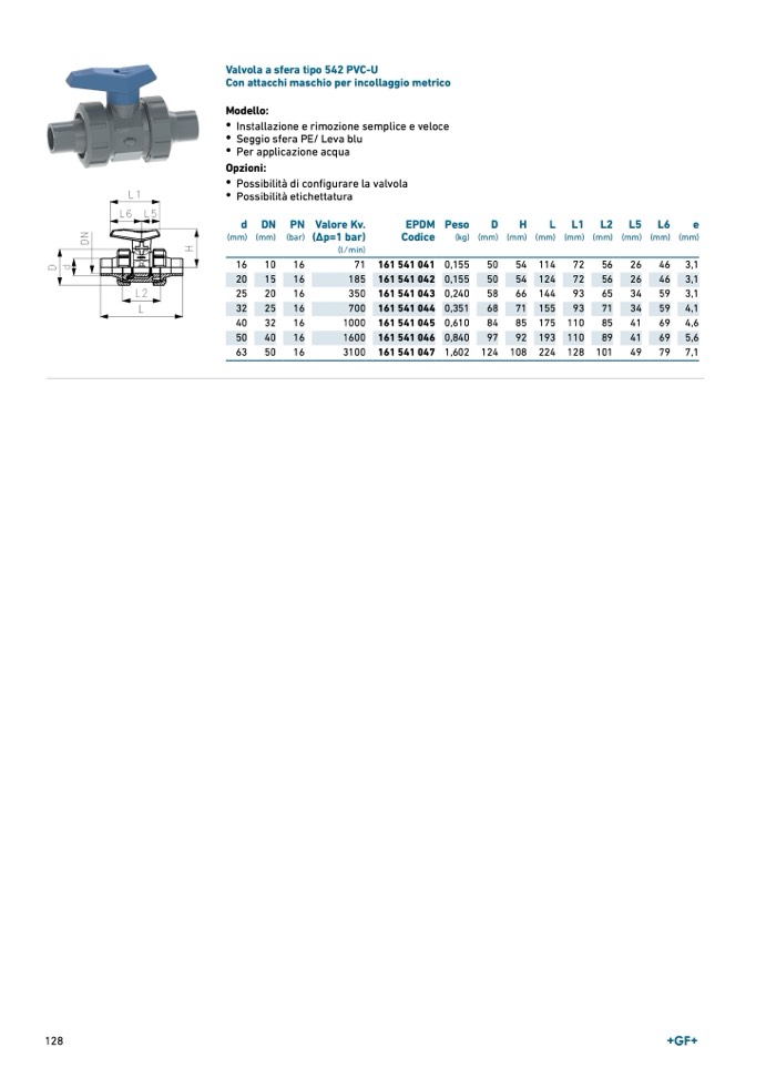 Valvola a sfera tipo 542 PVC-U