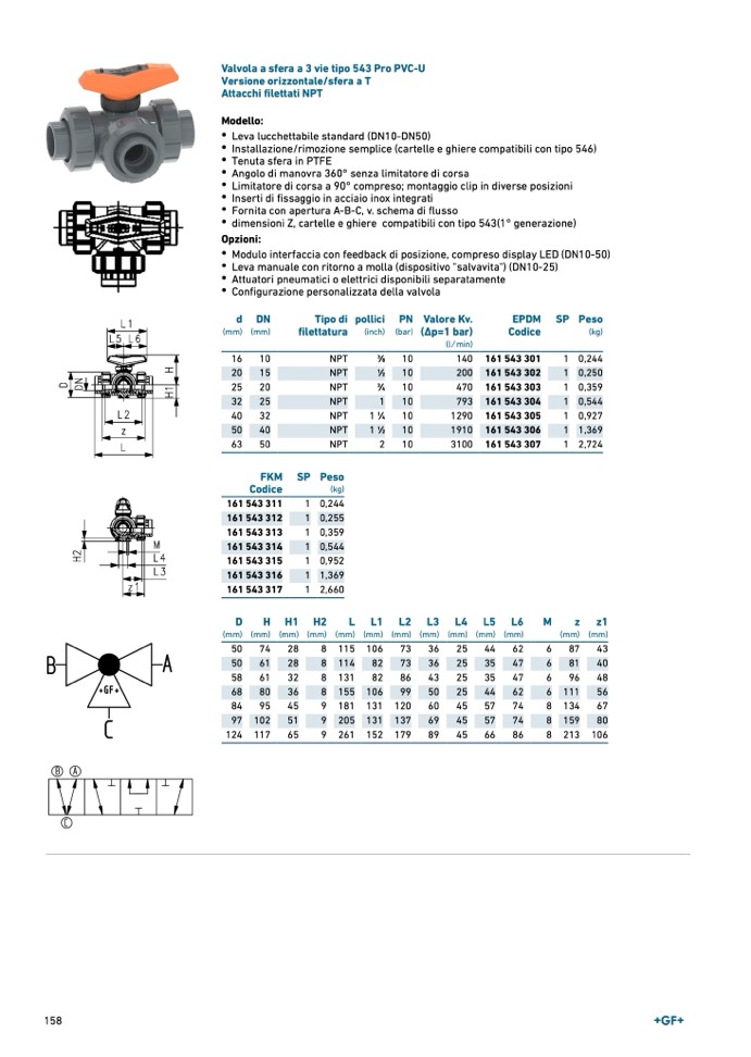 Valvola a sfera a 3 vie tipo 543 Pro PVC-