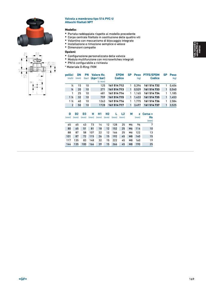 Valvola a membrana tipo 514 PVC-
