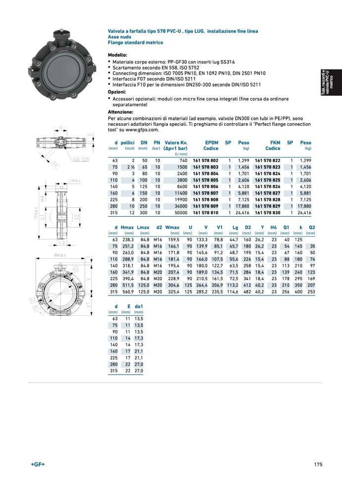 Valvola a farfalla tipo 578 PVC-U , tipo LUG, installazione fine line