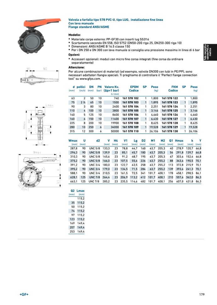 Valvola a farfalla tipo 578 PVC-U, tipo LUG, installazione fine line
