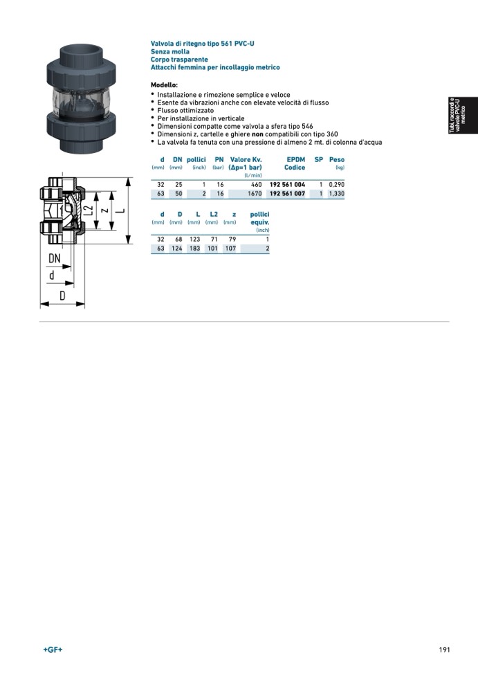Valvola di ritegno tipo 561 PVC-U