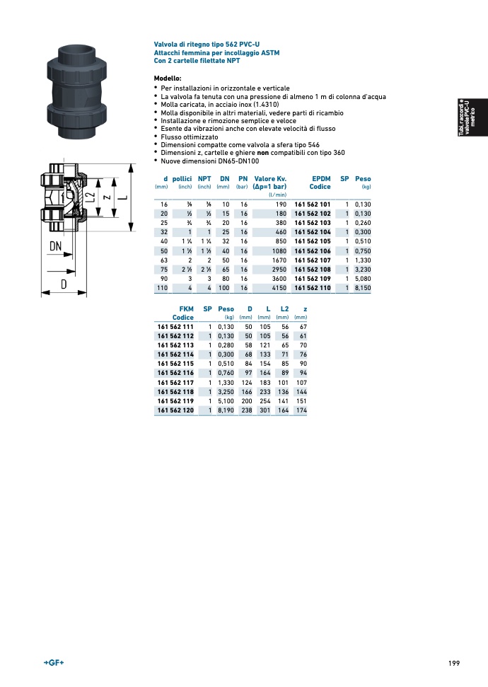Valvola di ritegno tipo 562 PVC-U