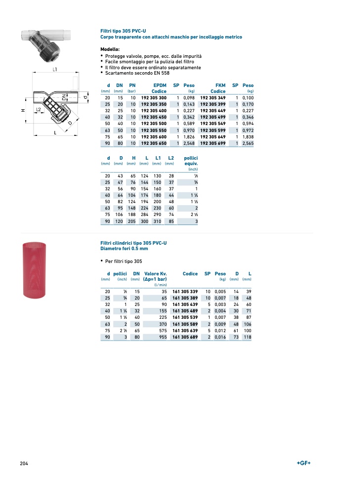 Filtri tipo 305 PVC-U