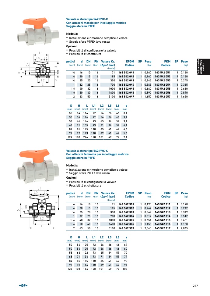 Valvola a sfera tipo 542 PVC-