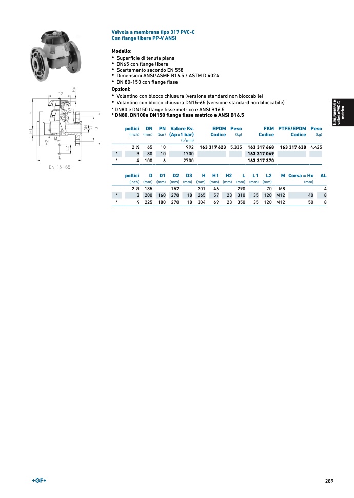 * DN80 e DN150 flange fisse metrico e ANSI B16.