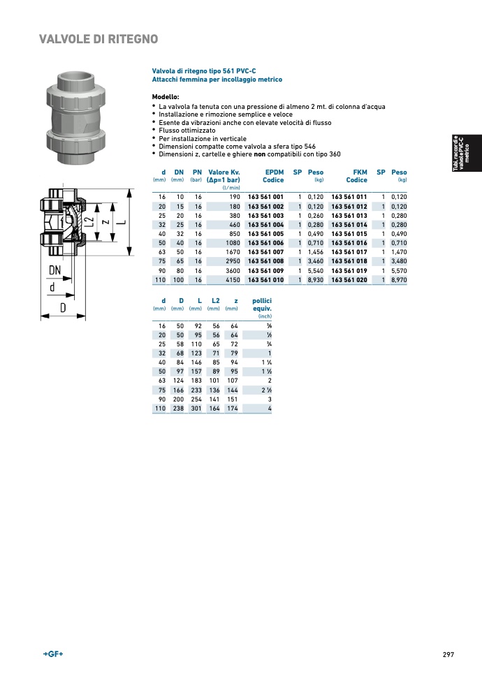 Valvola di ritegno tipo 561 PVC-C