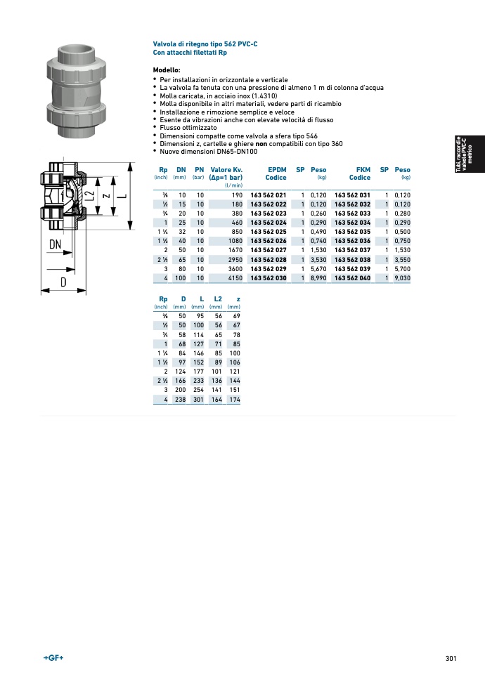 Valvola di ritegno tipo 562 PVC-C