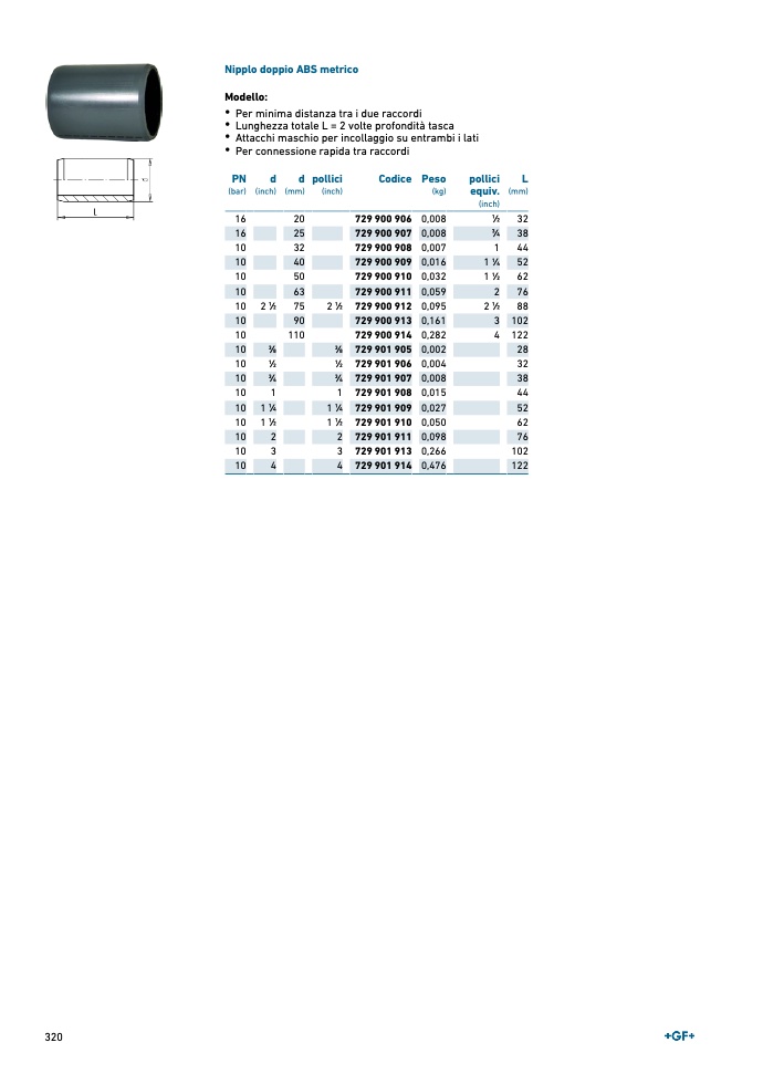 Nipplo doppio ABS metrico