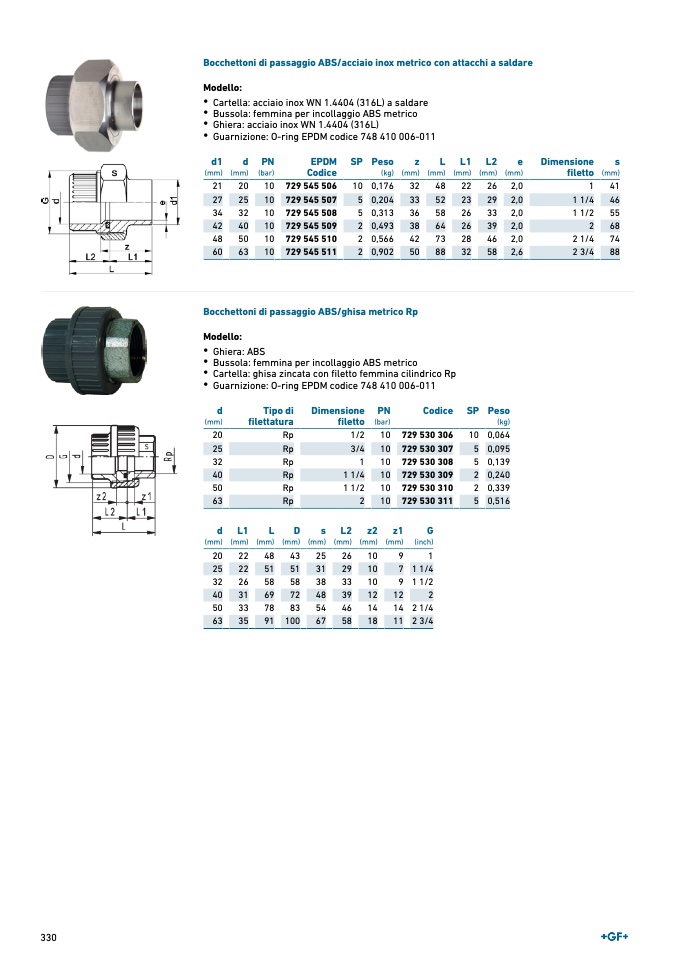 Bocchettoni di passaggio ABS/acciaio inox metrico con attacchi a saldare
