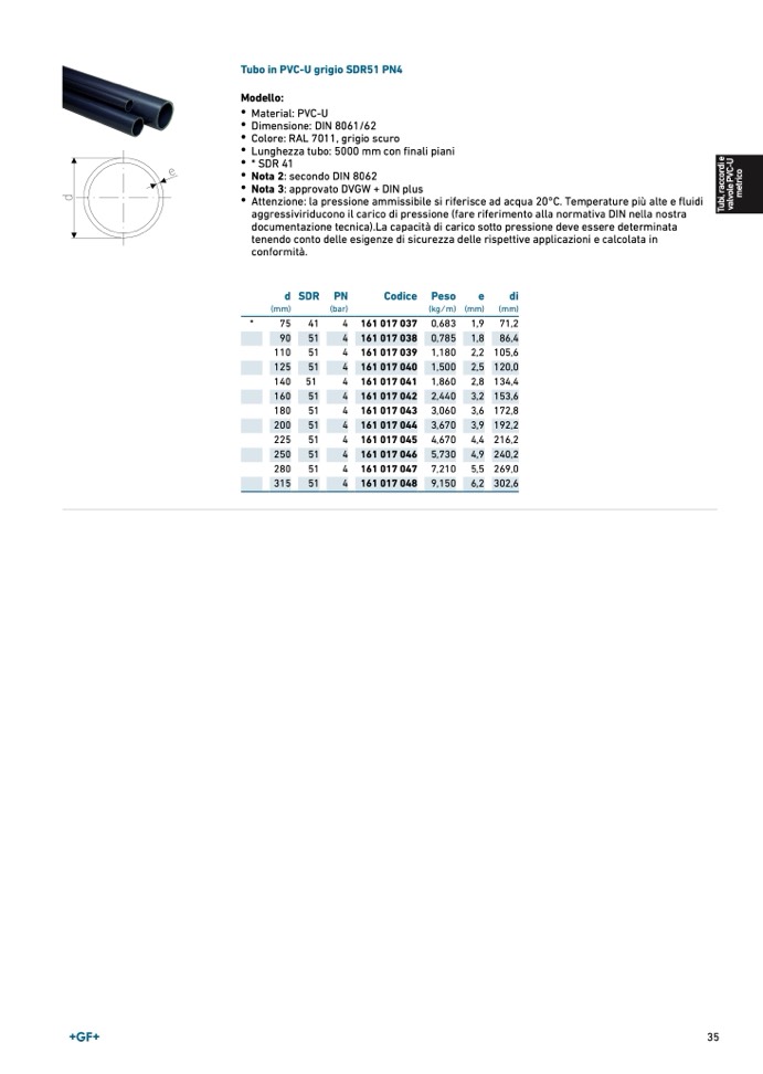 Tubo in PVC-U grigio SDR51 PN