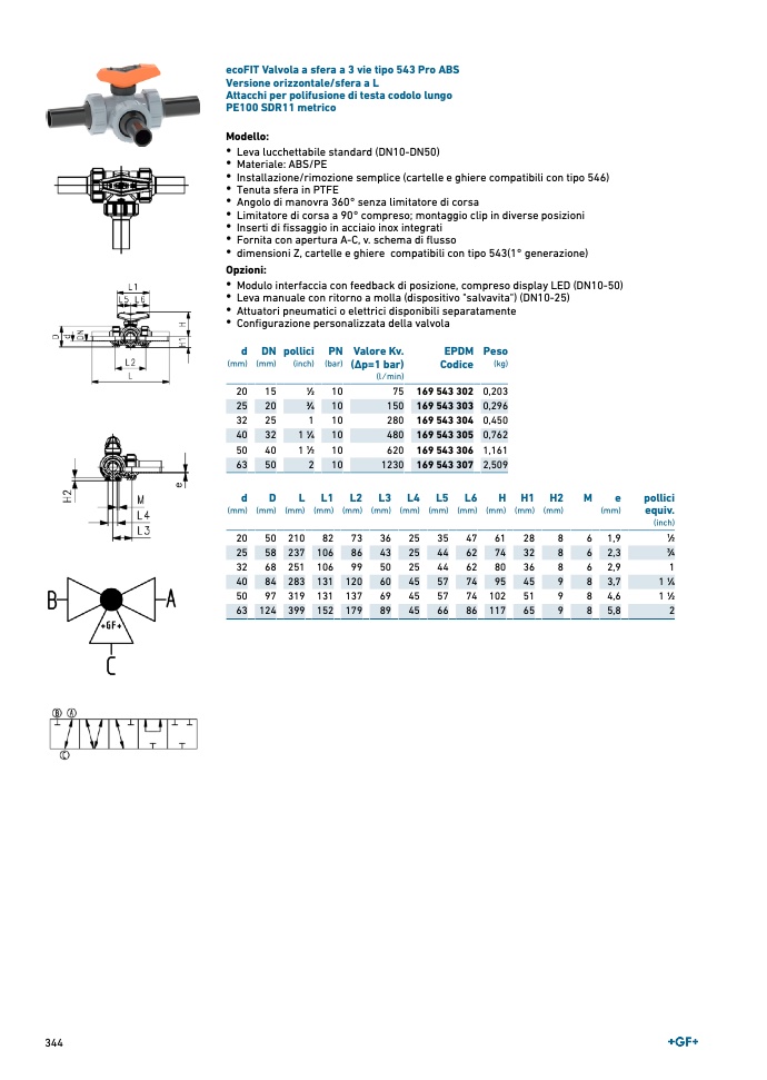 ecoFIT Valvola a sfera a 3 vie tipo 543 Pro ABS