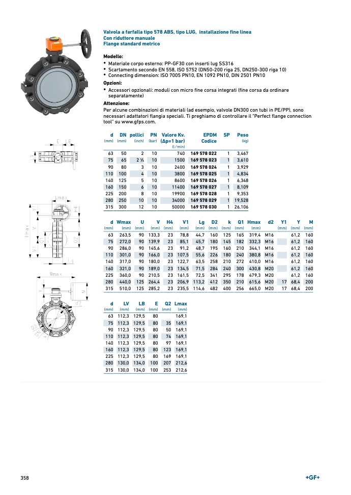 Valvola a farfalla tipo 578 ABS, tipo LUG, installazione fine linea