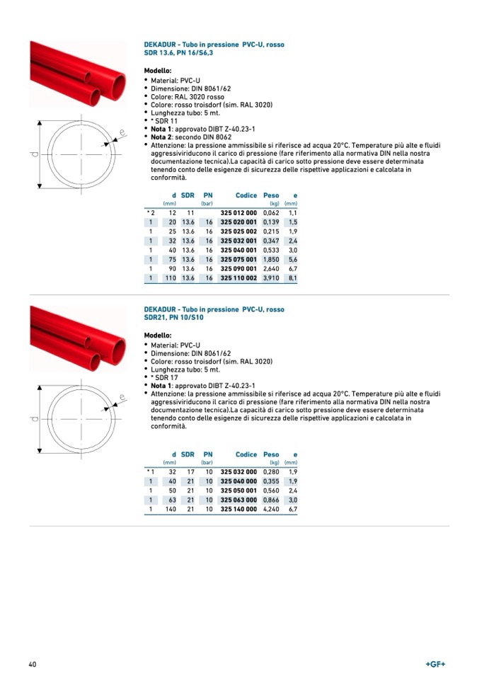 DEKADUR - Tubo in pressione PVC-U, ross