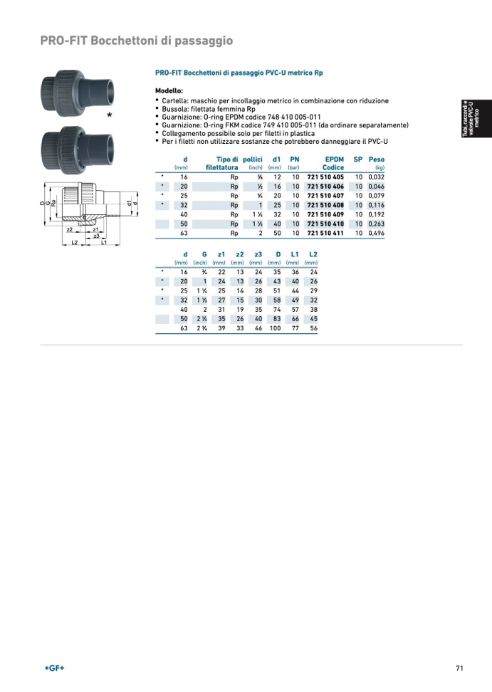 PRO-FIT Bocchettoni di passaggio PVC-U metrico R