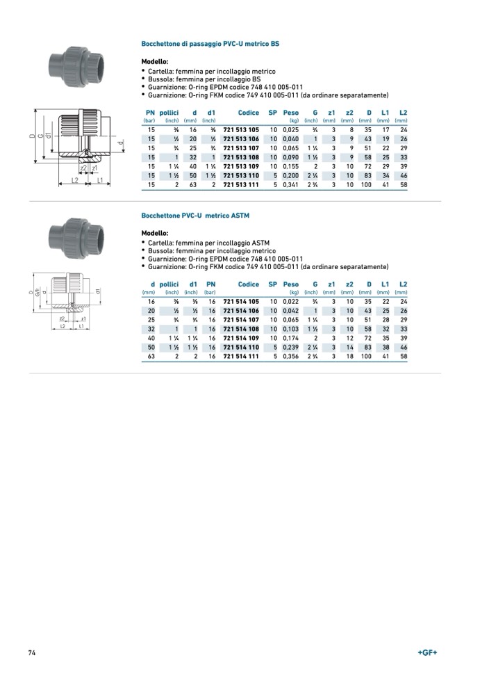 • Guarnizione: O-ring EPDM codice 748 410 005-011