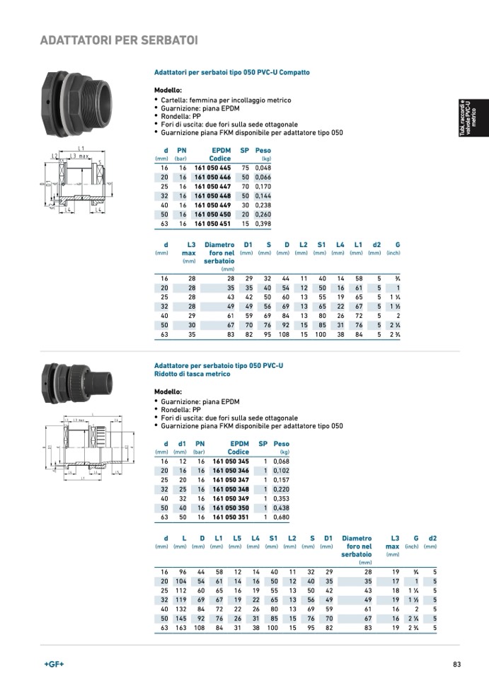 Adattatori per serbatoi tipo 050 PVC-U Compatt