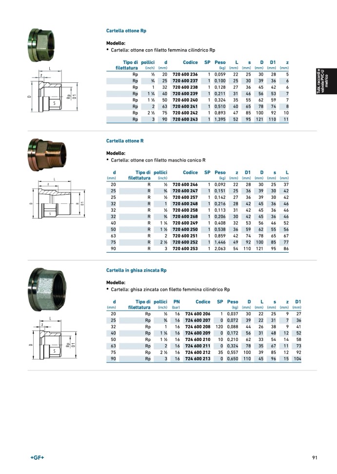 • Cartella: ottone con filetto femmina cilindrico R