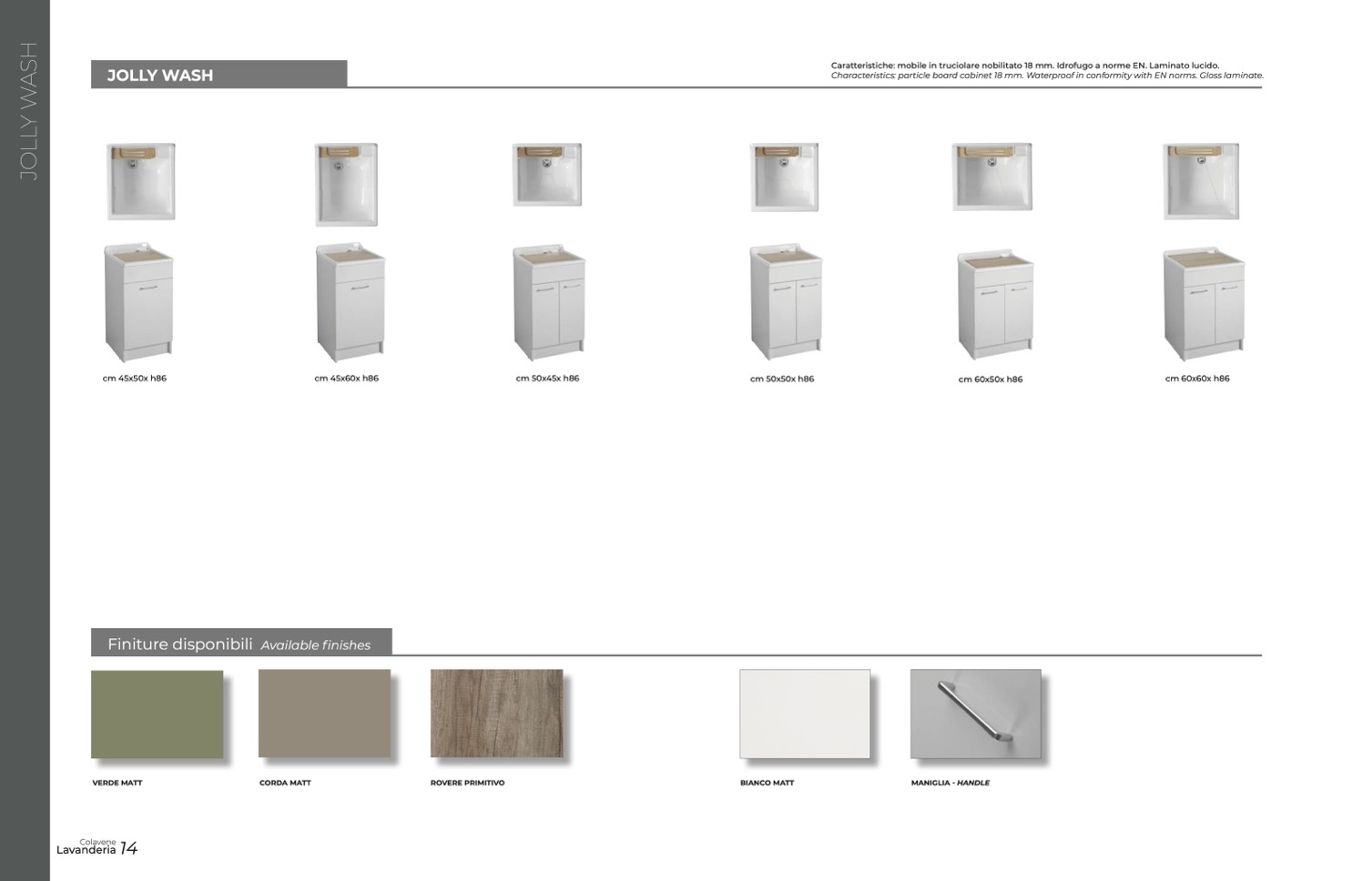 Characteristics: particle board cabinet 18 mm. Waterproof in conformity with EN norms. Gloss laminate.