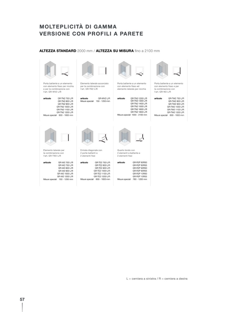L = cerniera a sinistra / R = cerniera a destra