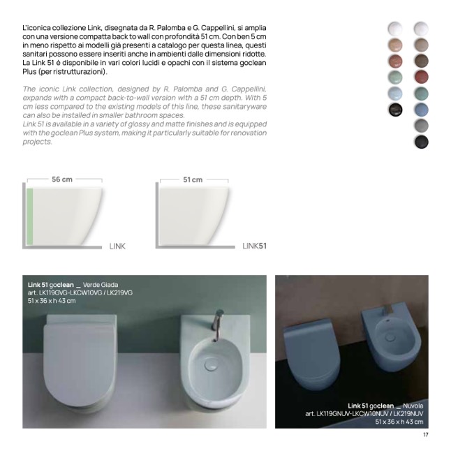 La Link 51 è disponibile in vari colori lucidi e opachi con il sistema goclean