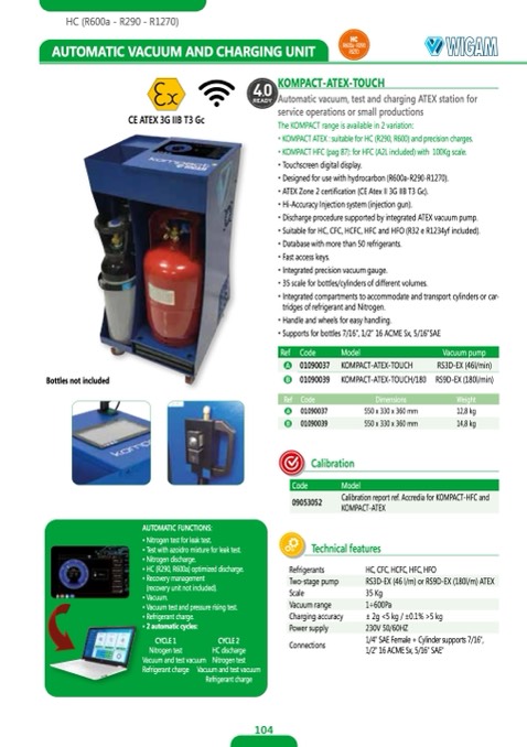 • KOMPACT ATEX : suitable for HC (R290, R600) and precision charges.