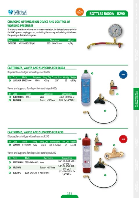CARTRIDGES, VALVES AND SUPPORTS FOR R290