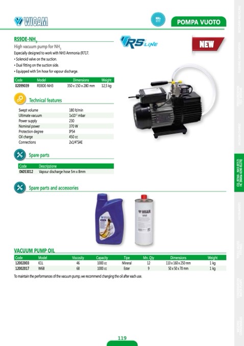 To maintain the performances of the vacuum pump, we recommend changing the oil after each use.
