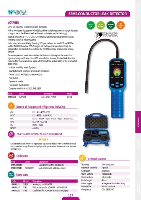 It detects efficiently all HFC, CFC, HCFC, HFO halogenated refrigerants and their mixtures