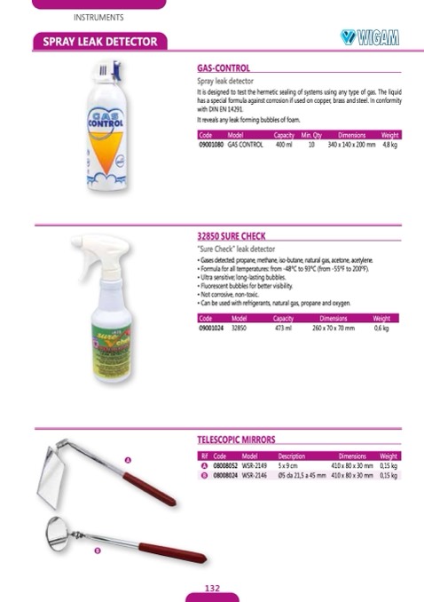 • Can be used with refrigerants, natural gas, propane and oxygen.