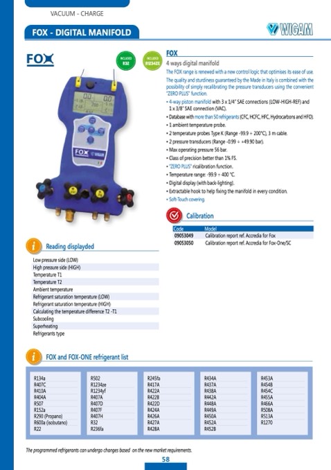 FOX and FOX-ONE refrigerant list