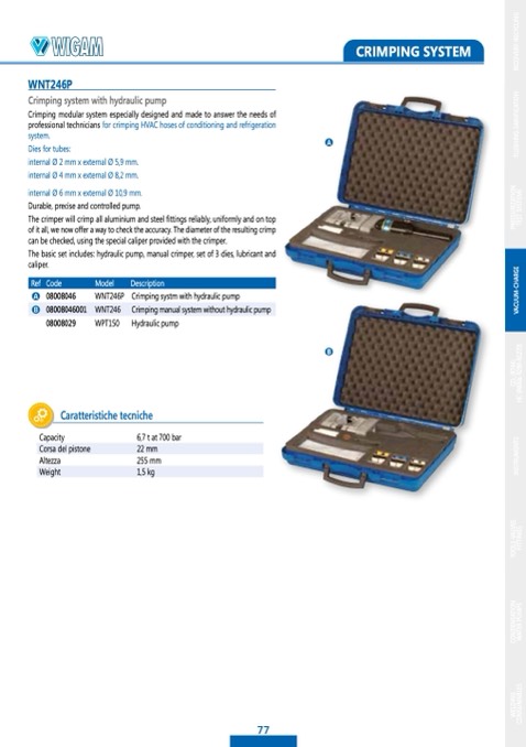 The basic set includes: hydraulic pump, manual crimper, set of 3 dies, lubricant and