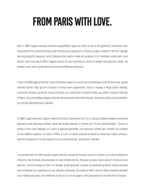 Back in 1909, Eugenio Renzetti (Riccardo’s grandfather) gave his name to one of the goldsmith workshops most
