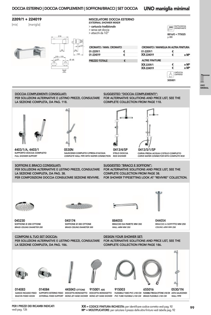 DOCCIA ESTERNO | DOCCIA COMPLEMENTI | SOFFIONI/BRACCI | SET DOCCIA