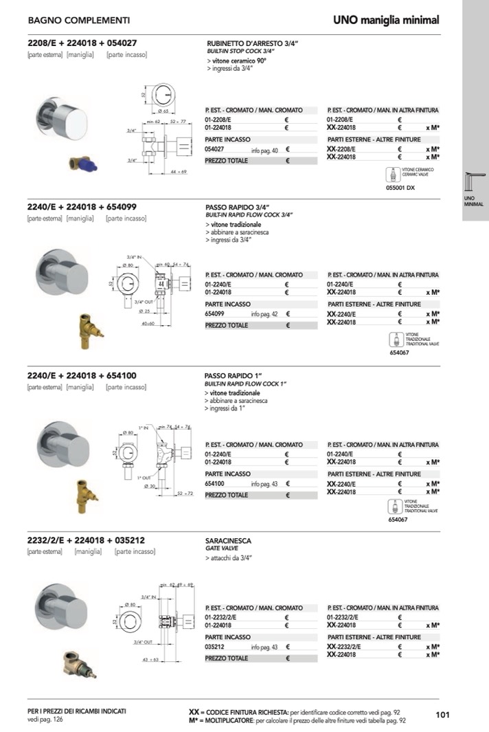 : per calcolare il prezzo delle altre finiture vedi tabella pag. 92