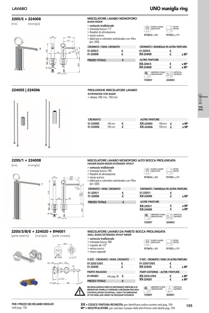 : per calcolare il prezzo delle altre finiture vedi tabella pag. 104