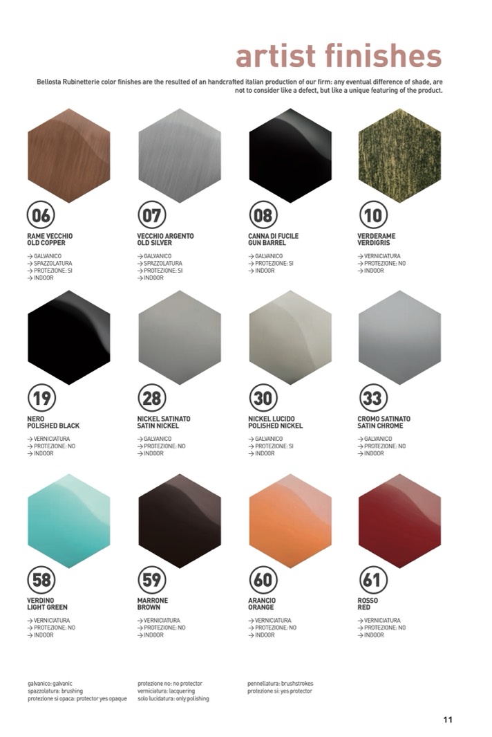 Bellosta Rubinetterie color finishes are the resulted of an handcrafted italian production of our firm: any eventual difference of shade, are