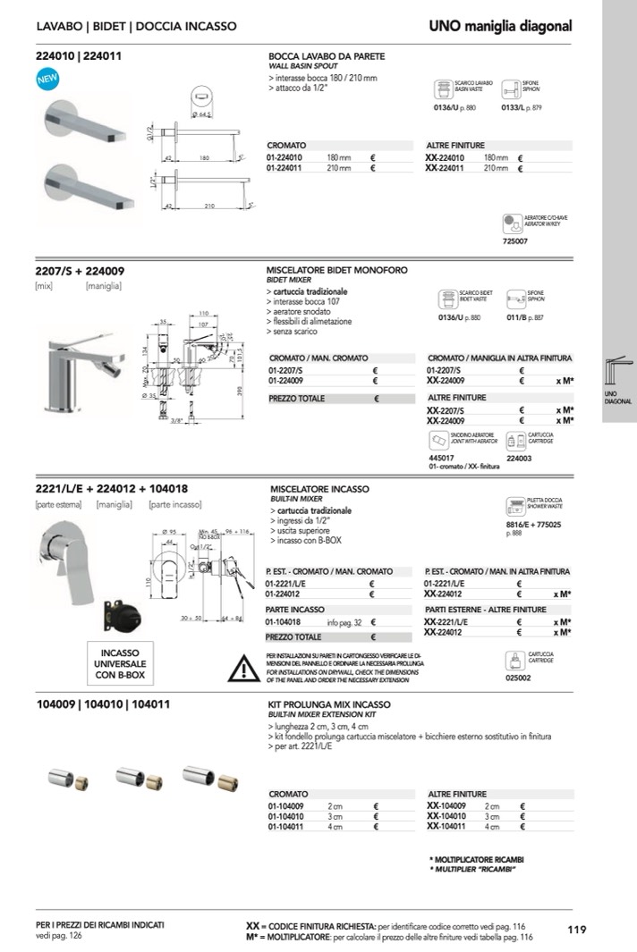 : per calcolare il prezzo delle altre finiture vedi tabella pag. 116