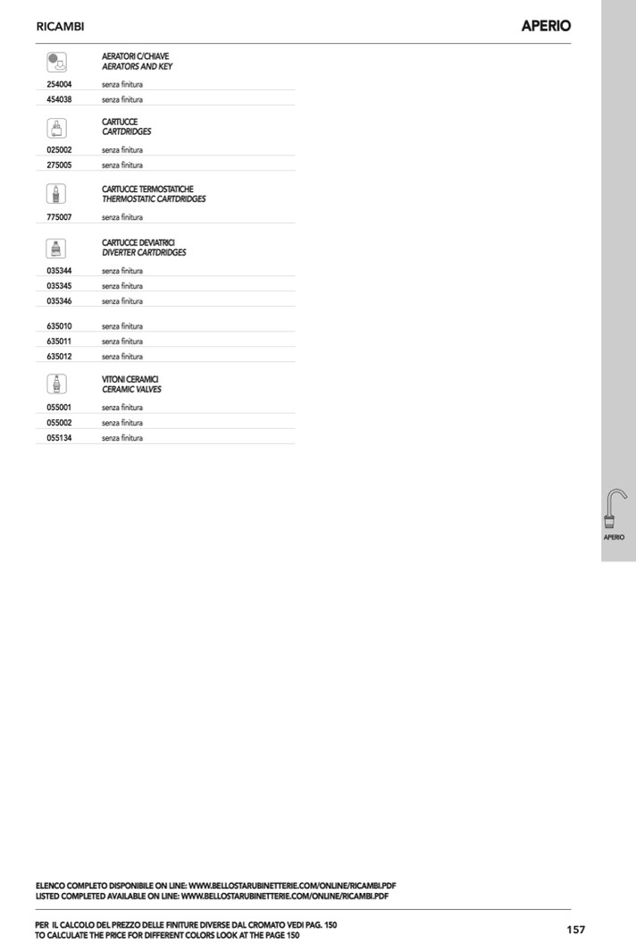 ELENCO COMPLETO DISPONIBILE ON LINE: WWW.BELLOSTARUBINETTERIE.COM/ONLINE/RICAMBI.PDF