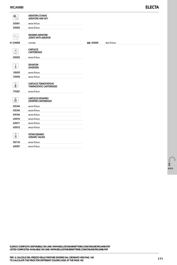 ELENCO COMPLETO DISPONIBILE ON LINE: WWW.BELLOSTARUBINETTERIE.COM/ONLINE/RICAMBI.PDF