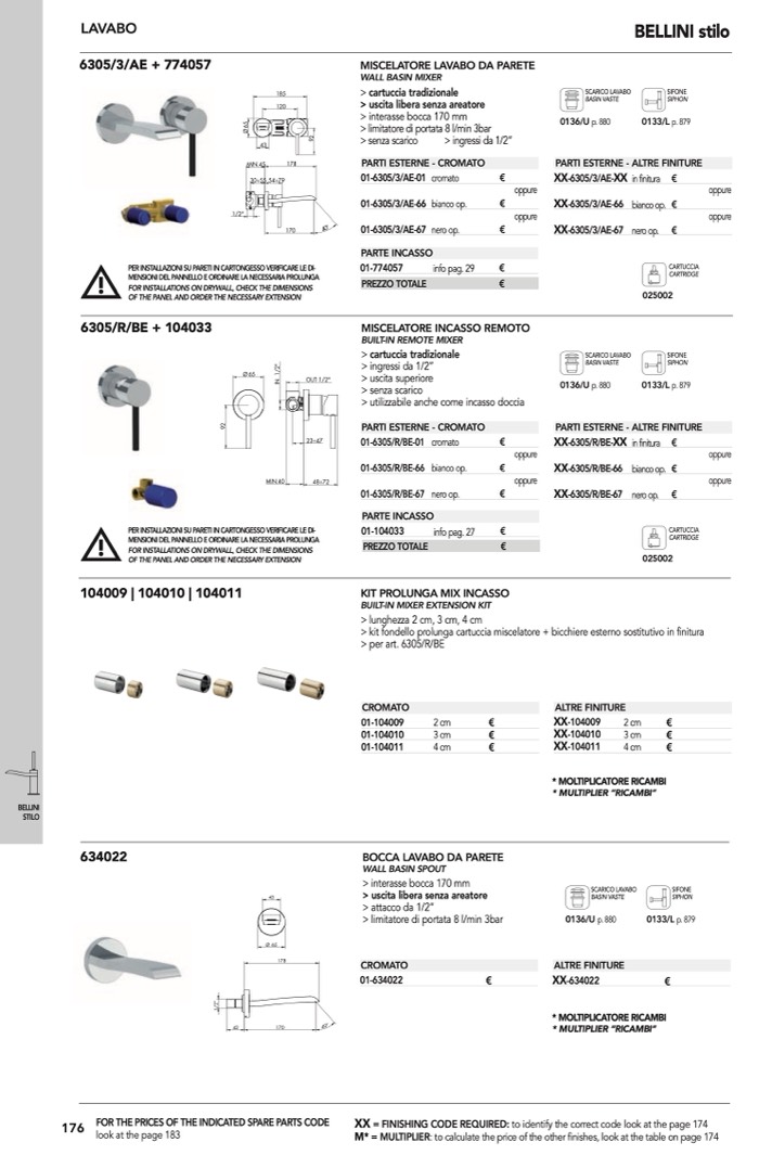 > kit fondello prolunga cartuccia miscelatore + bicchiere esterno sostitutivo in finitura