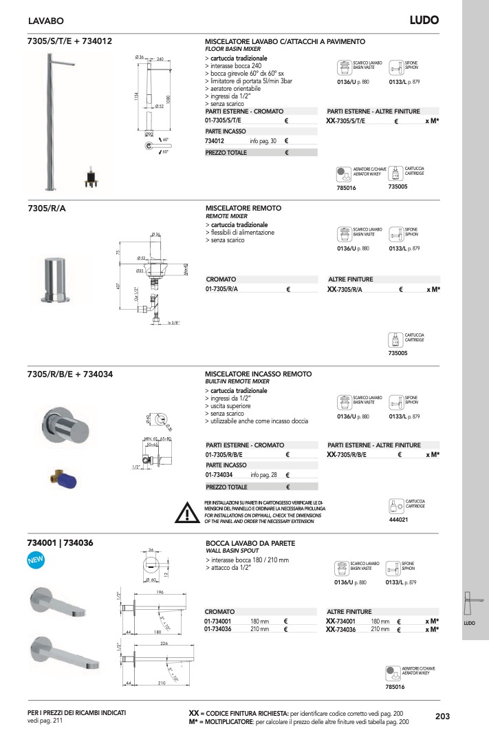 : per calcolare il prezzo delle altre finiture vedi tabella pag. 200