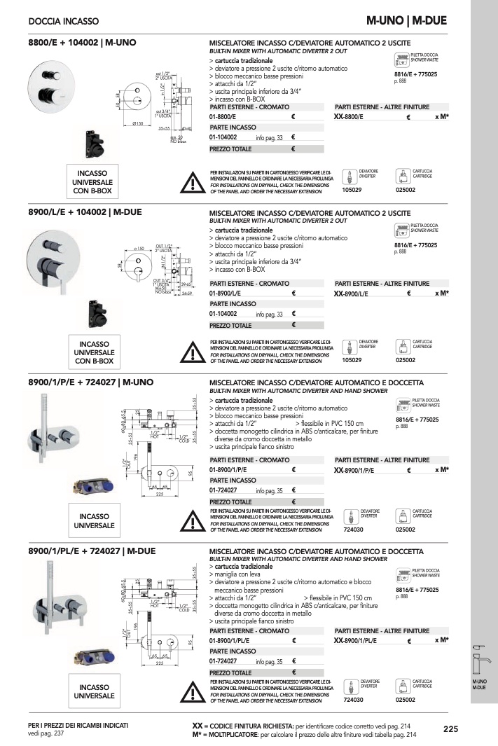 : per calcolare il prezzo delle altre finiture vedi tabella pag. 214