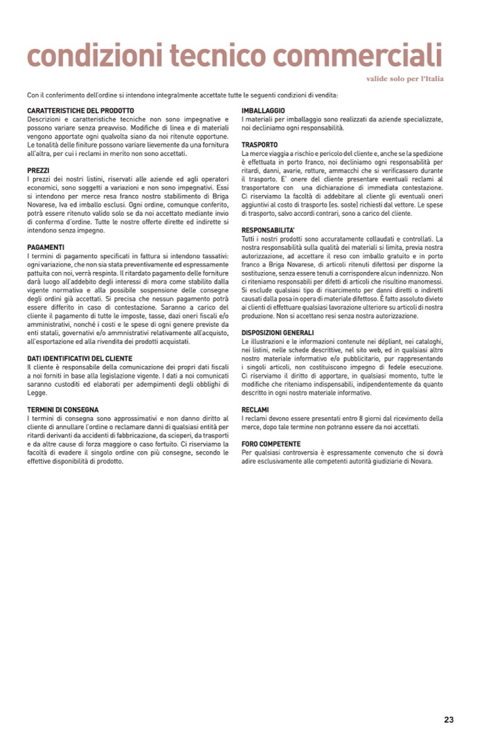Novarese, Iva ed imballo esclusi. Ogni ordine, comunque conferito,