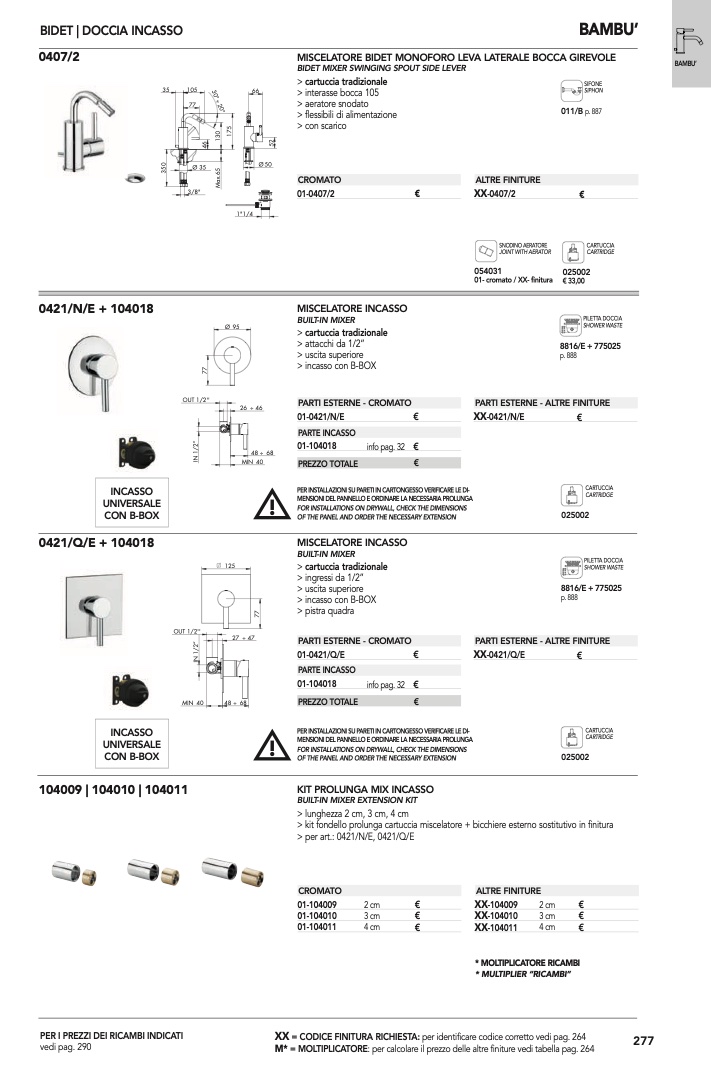 : per calcolare il prezzo delle altre finiture vedi tabella pag. 264