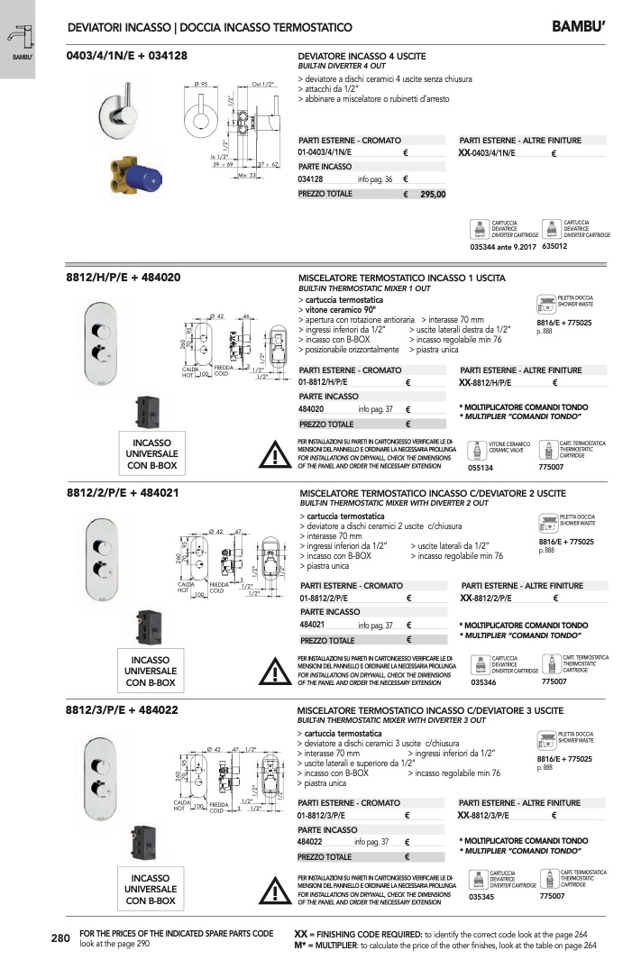 BUILT-IN THERMOSTATIC MIXER WITH DIVERTER 3 OUT