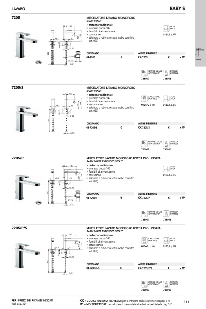 : per calcolare il prezzo delle altre finiture vedi tabella pag. 310