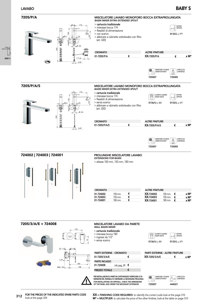 : to calculate the price of the other finishes, look at the table on page 310