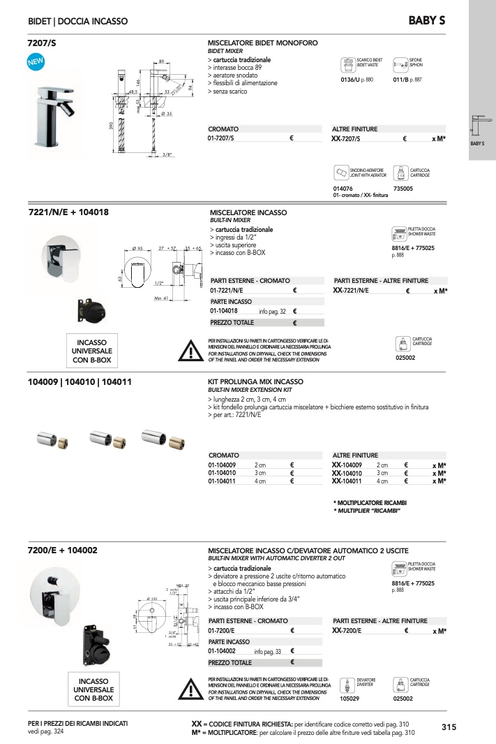 : per calcolare il prezzo delle altre finiture vedi tabella pag. 310