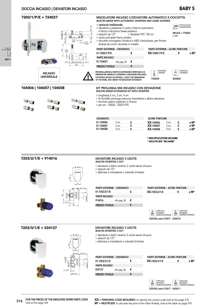 > kit fondello prolunga cartuccia miscelatore e albero deviatore